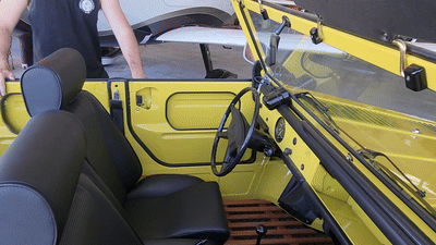 These front seats enable you to sit lower, giving you more steering wheel clearance and improved comfort. They include a backrest reclining mechanism for quick adjustment. The Thing Shop’s goal is to create a sport seat that we think resembles the style and design offered by German car makers. This particular style of seat resembles the Recaro sport seat that was offered by Porche for the 911 in the 1970’s. We’ve had several customers visit our shop over the past few months and tried getting in and out of our test car — and they’ve all been pleasantly surprised with the experience..